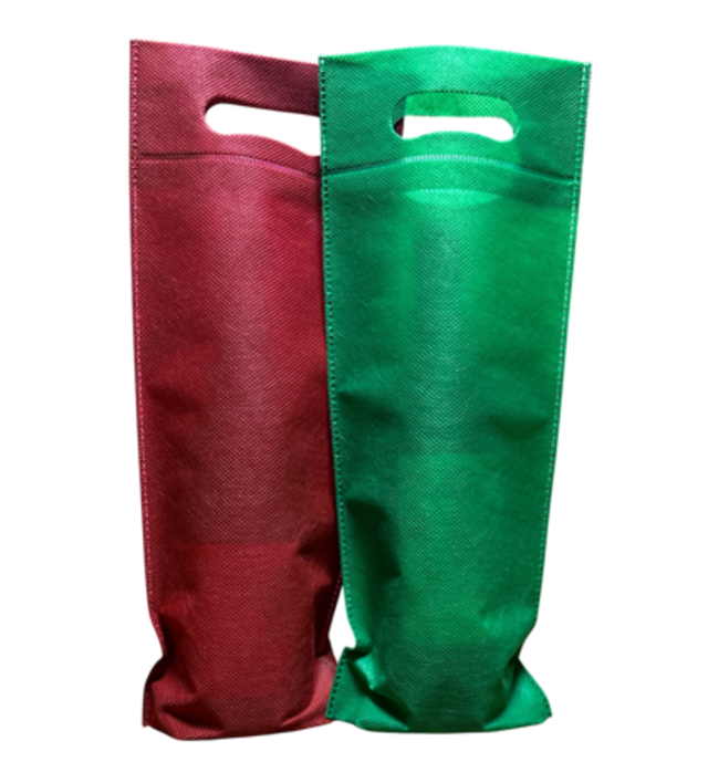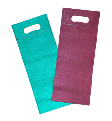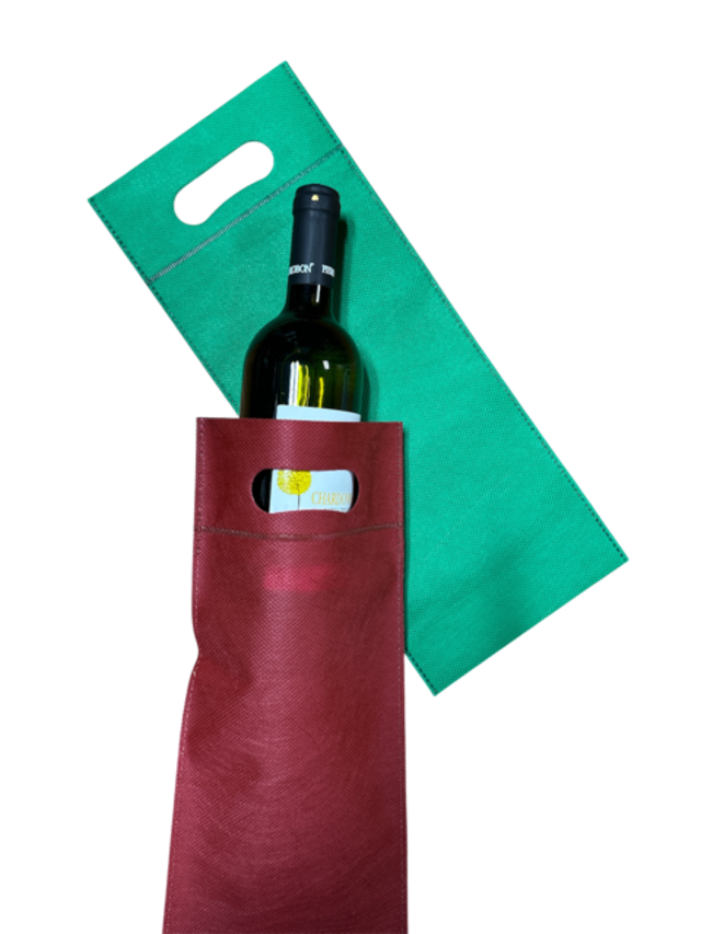 持ち手穴付きのカジュアルな不織布製ボトルバッグです。